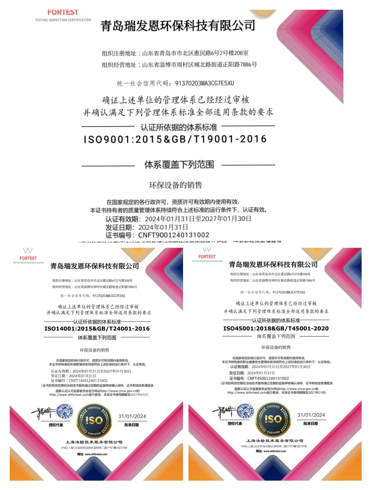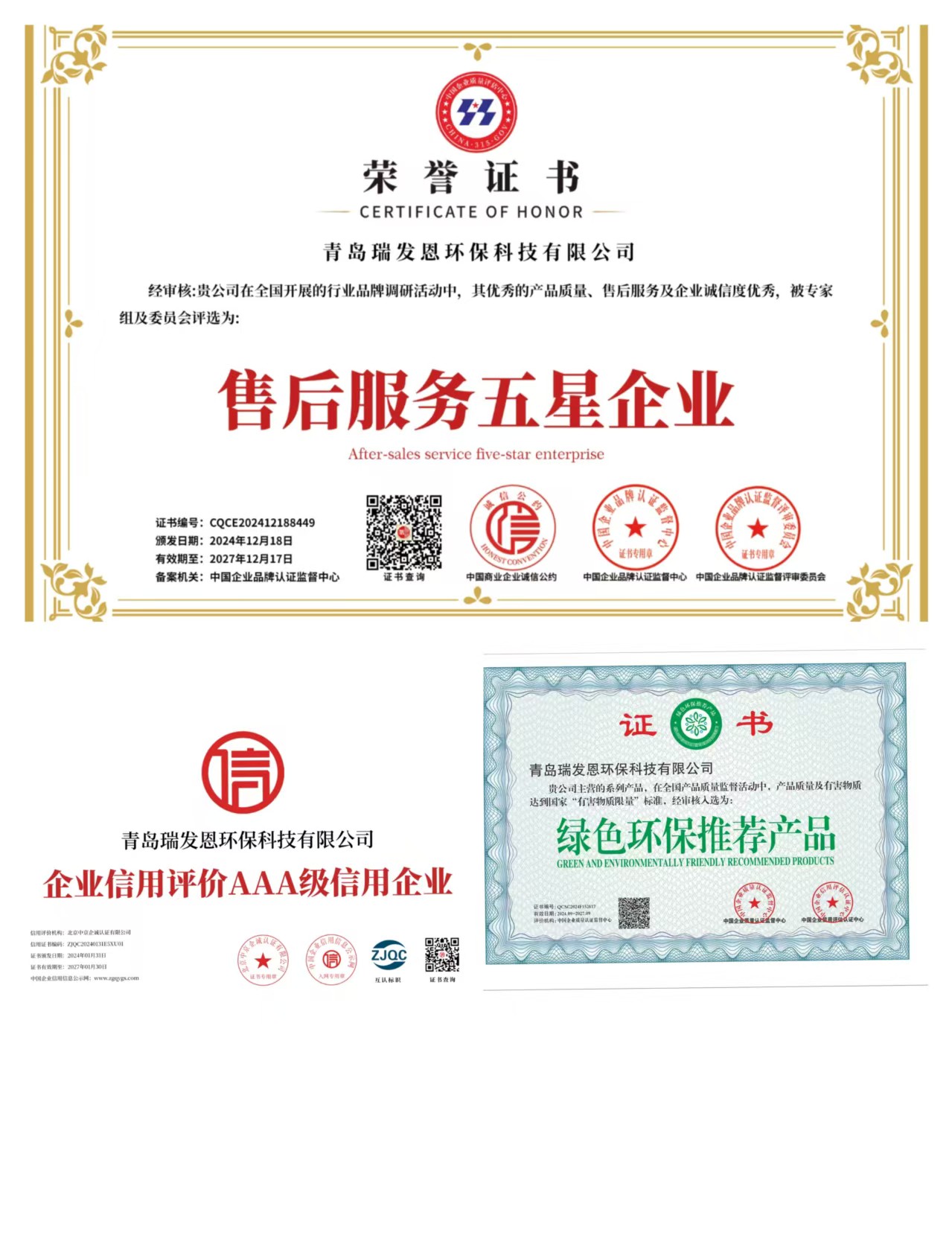 公司已經(jīng)通過環(huán)保,質(zhì)量,安全三項(xiàng)認(rèn)證,并獲得AAA信用等級(jí)認(rèn)可、綠色環(huán)保推薦產(chǎn)品、售后服務(wù)五星企業(yè)證書。